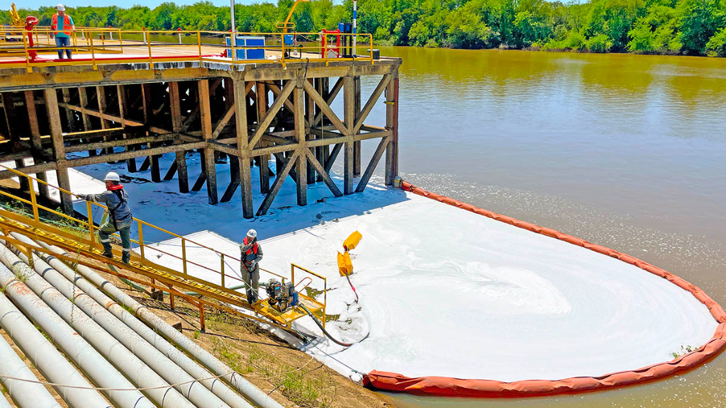 Brigadas de seguridad activaron de inmediato los protocolos internos de seguridad, se desplegaron barreras de contención flotantes y equipos de absorción.